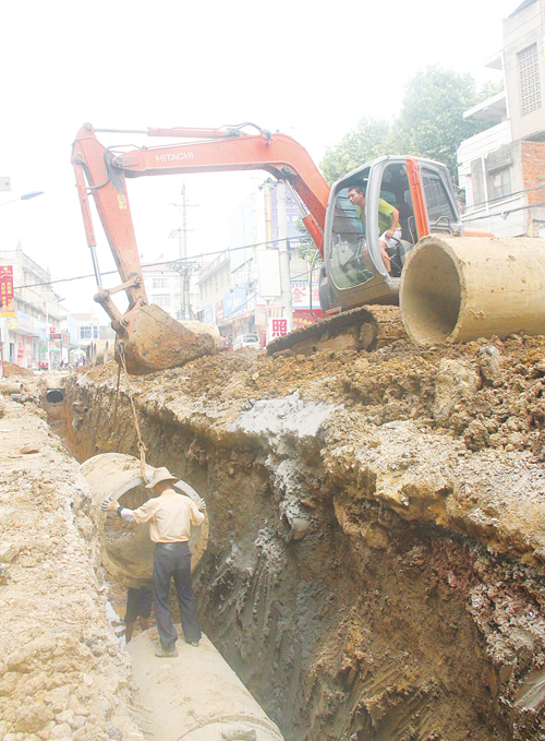 孝昌縣鄒崗鎮(zhèn)鎮(zhèn)區(qū)現(xiàn)有排水管網(wǎng)存在使用時間長、規(guī)模小、規(guī)劃不合理等問題。今年,鄒崗鎮(zhèn)投資13萬元,對鎮(zhèn)區(qū)排水管網(wǎng)進(jìn)行改造,加快排水速度。圖為孝昌縣鄒崗鎮(zhèn)文衛(wèi)街下水道改造施工現(xiàn)場,吊車正在安裝涵管。